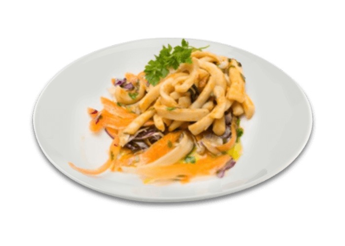 A la sicilienne Servi avec frites maison, haricots verts, pâtes, salade verte.
